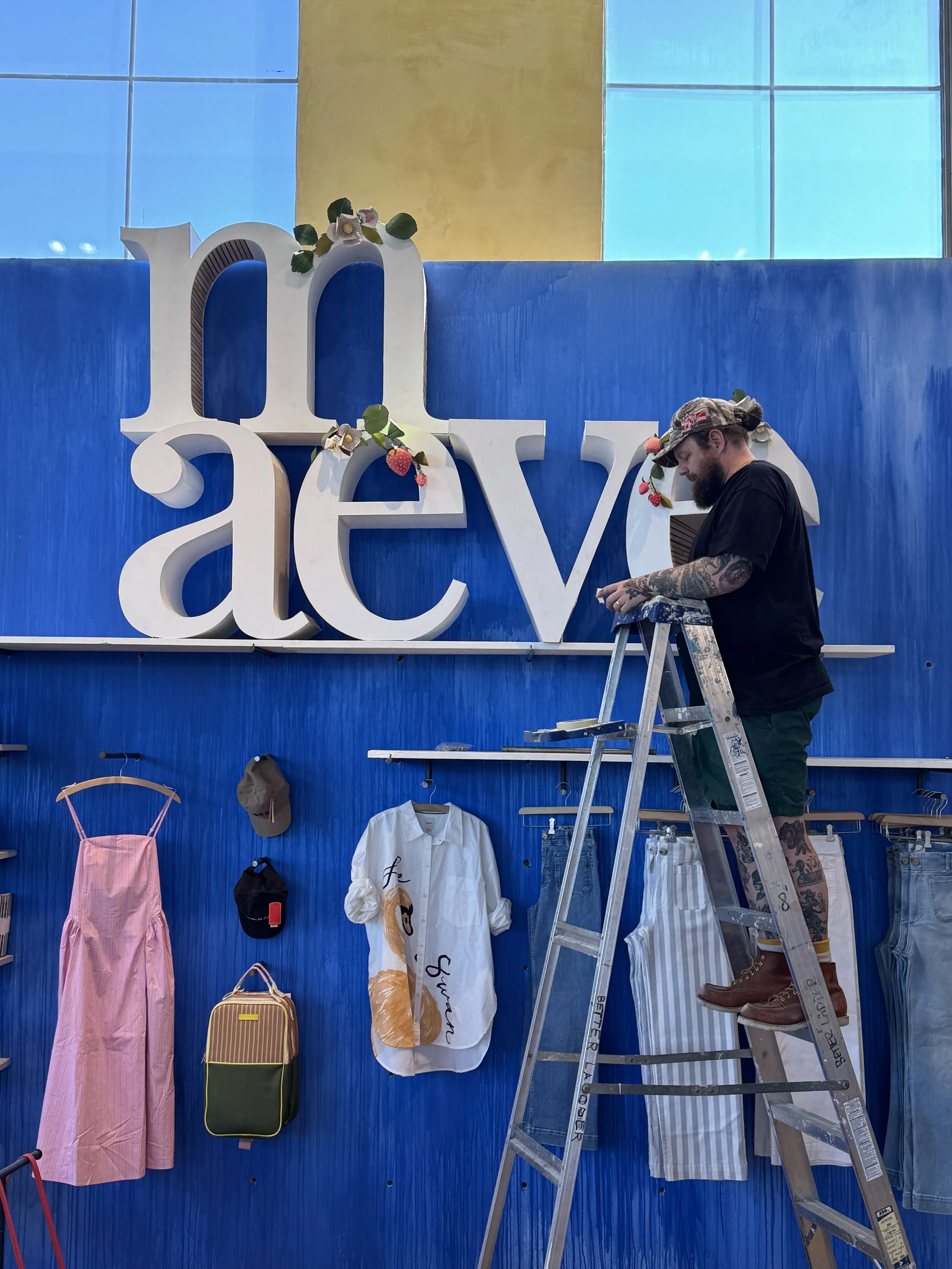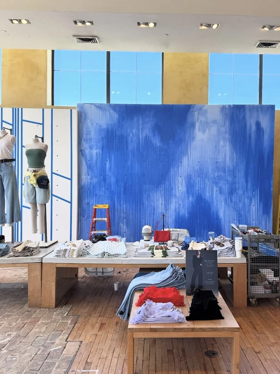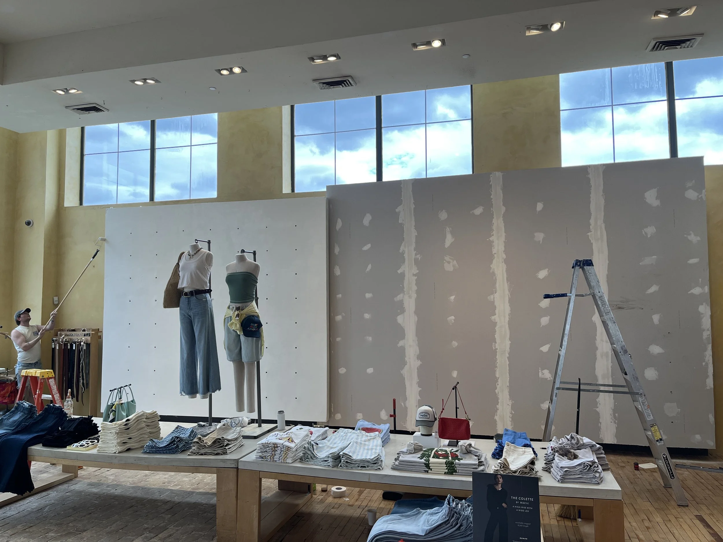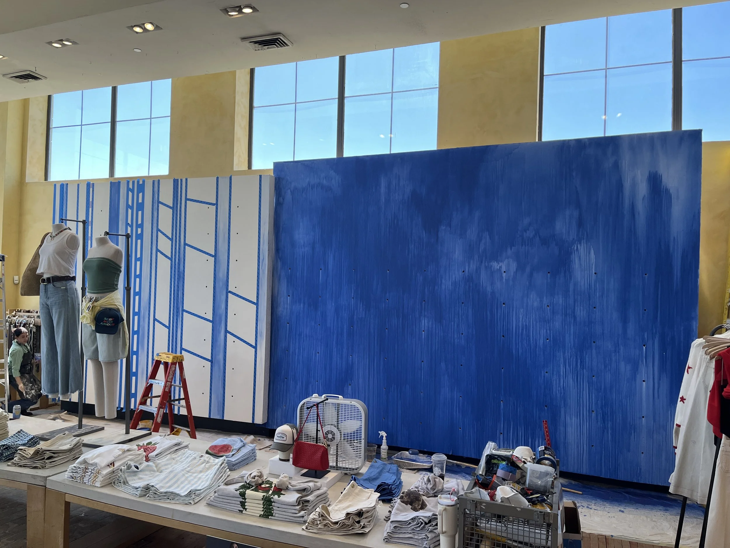 Wall build for specfic clothing concept entitled “MAEVE” the Anthropologie brand is finding success in, with plans to open specific stores built off this line. 12 ft drywall to enhance vertical height of second wall and painting.